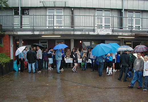 Ausgerechnet das erste E-Jugend-Turnier zugunsten krebskranker Kinder stand zunächst nicht unter einem guten Stern; der Wettergott war den Beteiligten nicht wohl gesonnen.