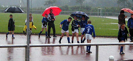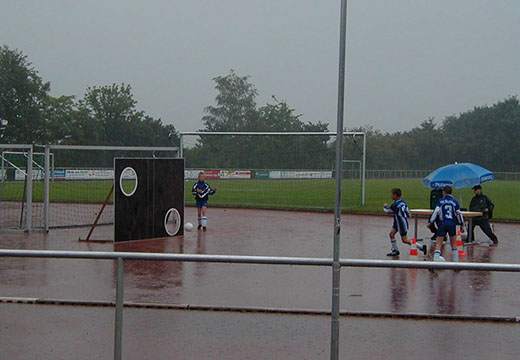 Ausgerechnet das erste E-Jugend-Turnier zugunsten krebskranker Kinder stand zunächst nicht unter einem guten Stern; der Wettergott war den Beteiligten nicht wohl gesonnen.