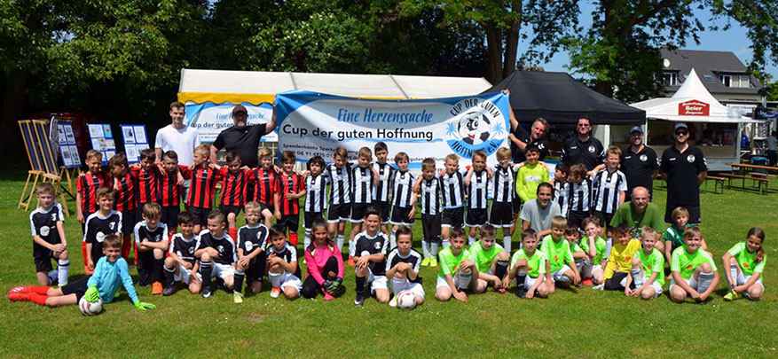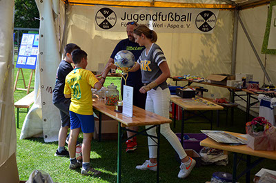 Dieses Jahr bot der SV-Werl-Aspe aufgrund des 100 jährigen Be-stehens einen guten Anlass, dort ein F-Jugend-Turnier für den guten Zweck zu veranstalten. Das Wetter war schon fast etwas zu gut, so dass nicht so viel Besucher, wie eigentlich erhofft, kamen. Die jungen Kicker störte das nicht; sie waren eifrig dabei und letztendlich konnte sich sogar das Heimteam durchsetzen und den Wanderpokal stolz in Empfang nehmen.